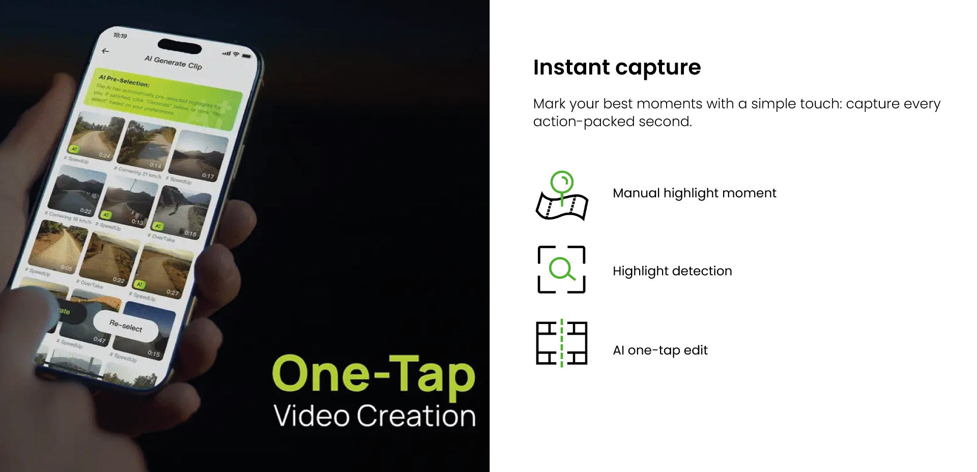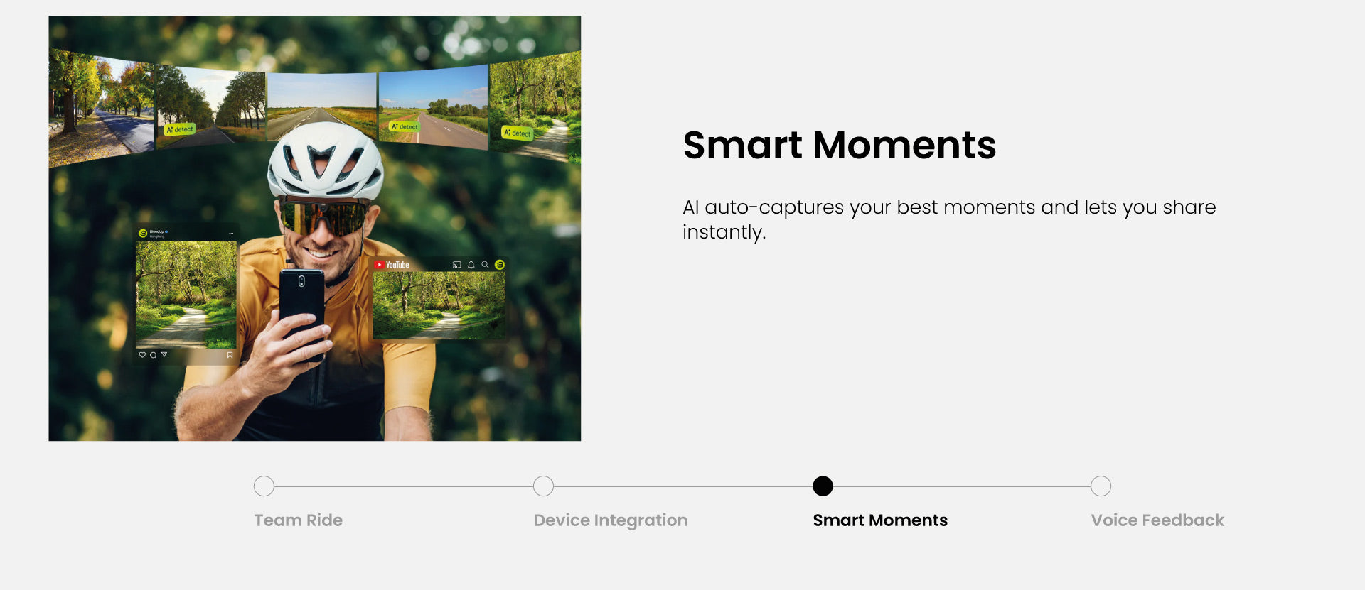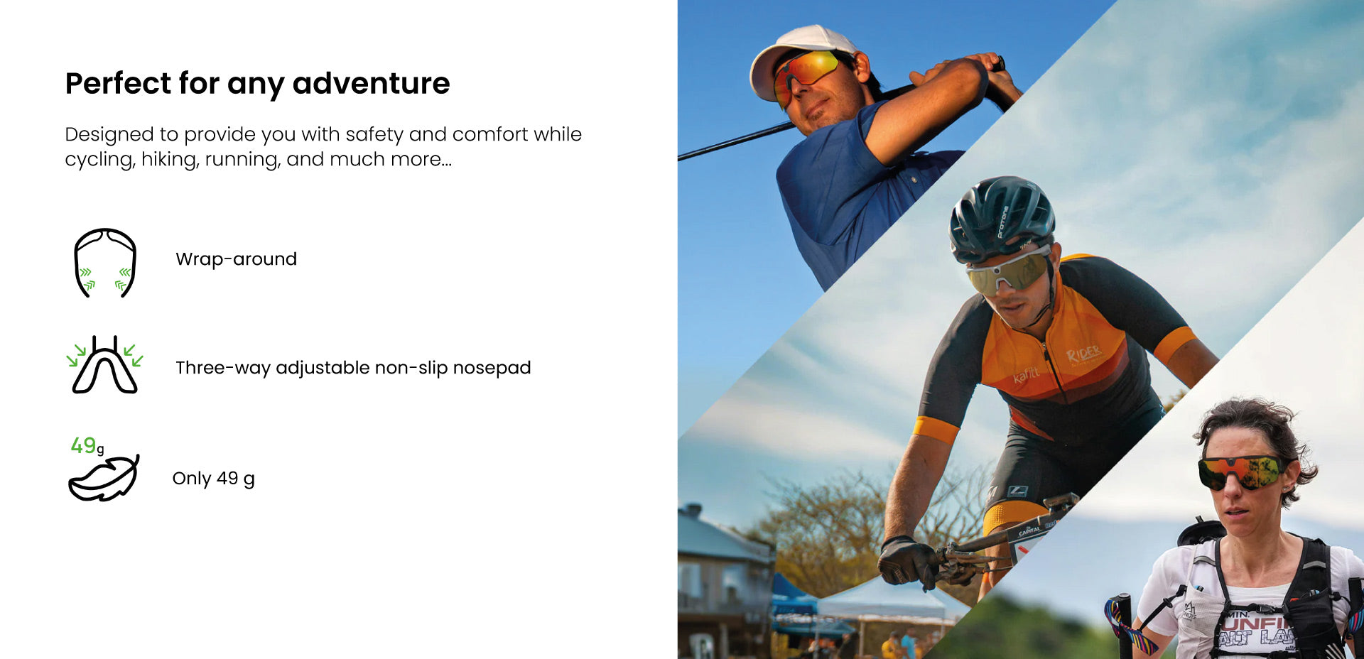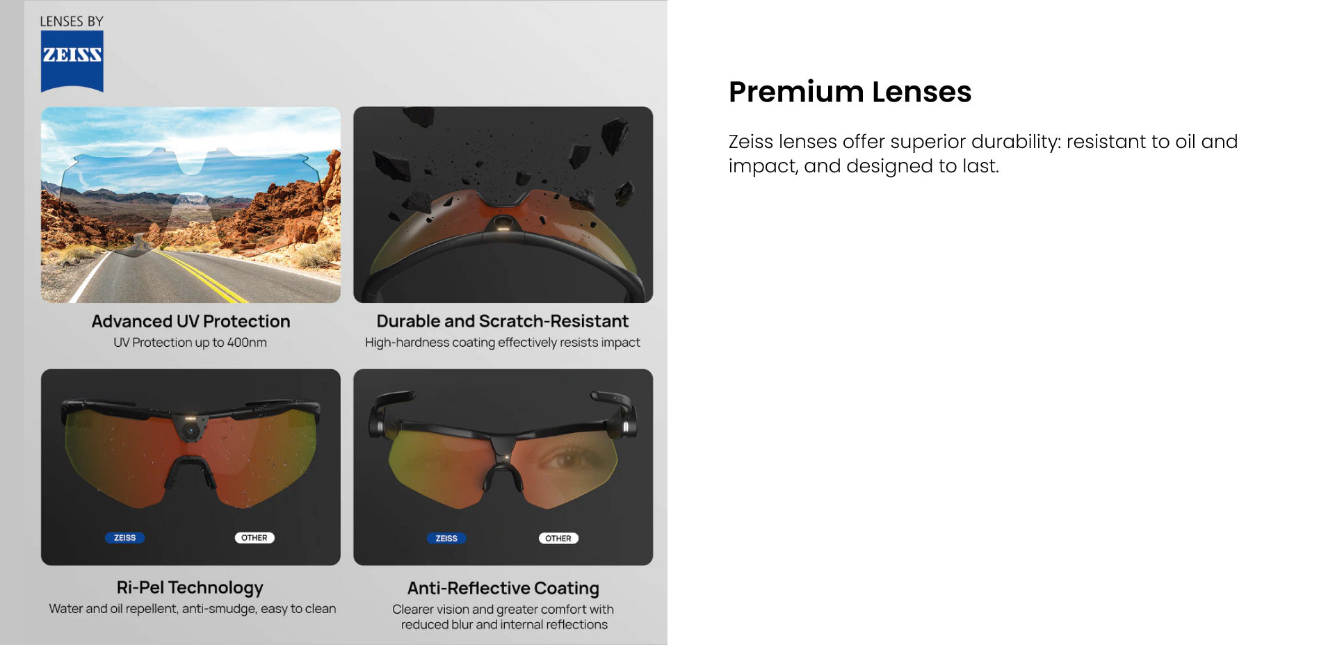 The first 4-in-1 sports glasses that combine an AI action camera, sports glasses, open driving audio and real-time communication in a single ultra-lightweight device.